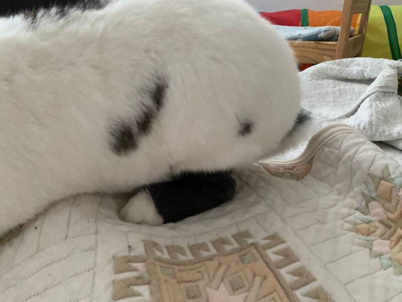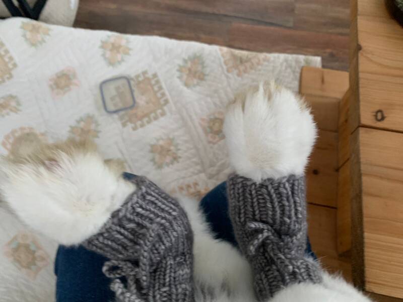 Ja het is echt waar , onze opvangers hebben een oma gevonden die voor hun sore hocks sokjes is gaan breien.