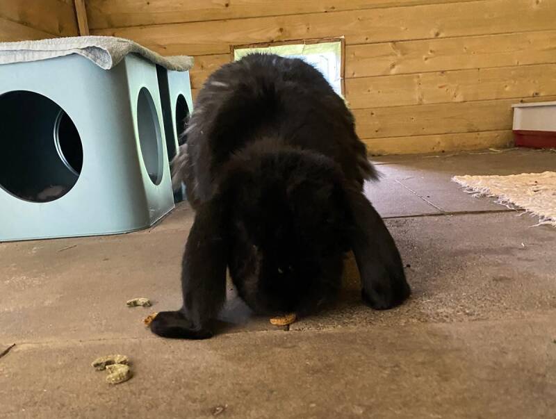 De operatie is goed verlopen en Nadine eet zelf weer brokjes en fijn gesneden groente. Ze is hier nu in de opvang om verder te herstellen en hier blijven tot na haar 2e de operatie.