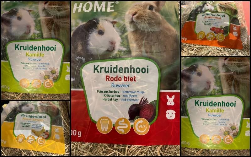 Whow zo geweldig dit, heerlijke kruiden hooi met rode biet, kamille, banaan en appel en rozenbottel en ook nog een doos timothy hooi.